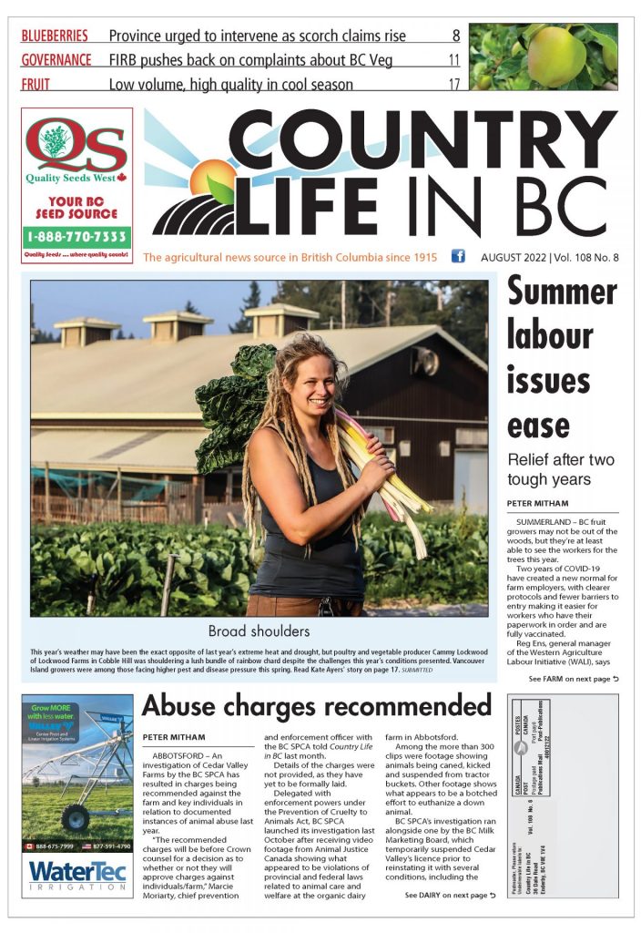 “The recommended charges will be before Crown counsel for a decision as to whether or not they will approve charges against individuals/farm,” Marcie Moriarty, chief prevention and enforcement officer with the BC SPCA told Country Life in BC last month.
