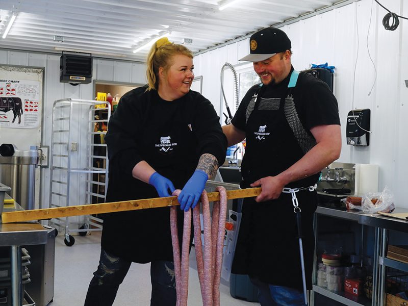 “My husband’s a heavy-duty mechanic and I was a school bus driver, and we both knew that we wanted to … work for ourselves,” Brittany Giesbrecht says. “We both grew up very avid hunters and I grew up on a farm doing 4-H and all that stuff. So, we we’ve been around the butchering and the slaughtering end of things our whole lives.”