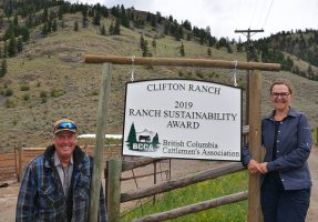 During the BC Cattlemen’s Association annual general meeting in Williams Lake at the end of May, the family-run Clifton Ranch receive the association’s ranch sustainability award. The award considers a ranch’s livestock management practices, land stewardship, animal care, benefit to the environment and contributions to the livestock industry or the local community.