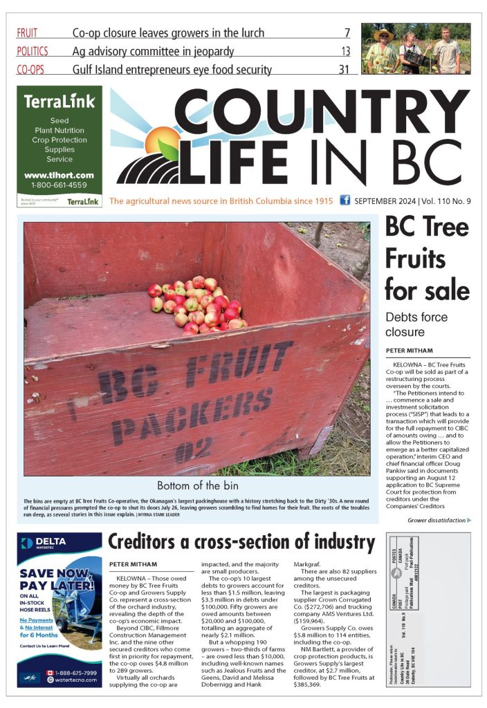 The co-op has told growers that CIBC, the largest of the co-op’s 11 secured creditors, will be paid first, then other creditors and finally the