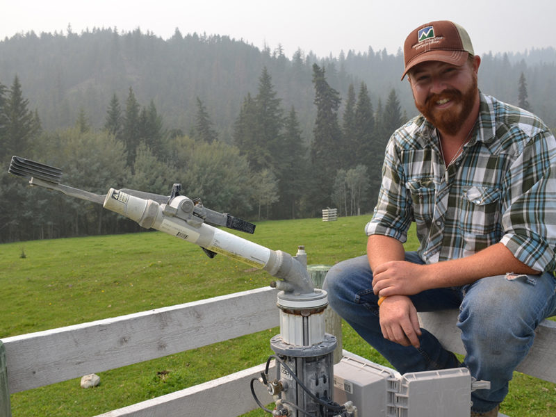 Tom Walker won the Don Baron award with his first-place feature photo of Vern Winger of WaterTec Irrigation with a TWIG wireless irrigation unit at John Grawher’s ranch near Clinton in the paper’s September 2018 edition.
