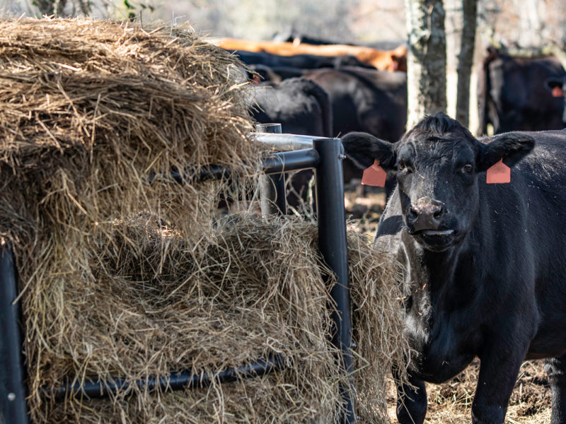Farmers should also be aware of the amount of straw they feed to cattle. Straw is high in fibre but poorly digestible. It is also low in minerals, vitamins, energy and protein. As a rule of thumb, producers can feed between 1.25% and 1.5% of a cow’s body weight in straw. For example, a 1,400 lb cow can consume between 18 and 22 lbs of straw in its ration. Producers should use caution when resorting to feeding straw as the cows will also require feeds that provide greater energy and nutritional value. However, grain may cause acidosis if the cattle aren’t used to a feedlot-like ration.
