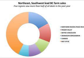 BC had a total of 51,000 farm properties worth $1.25 billion on the valuation date of July 1, 2018. Kamloops saw the least decline in values, with the roll down just 0.6% to $105 million worth of farmland.