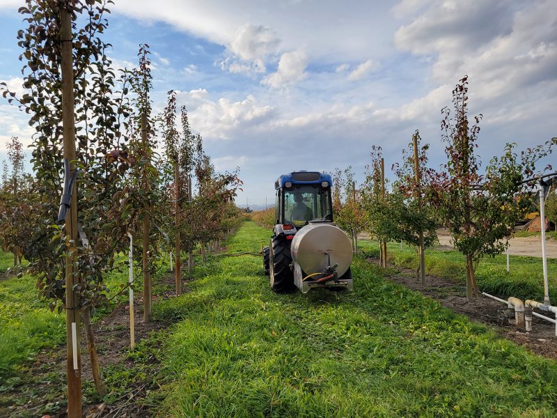 “Make sure your operator is trained properly and your sprayer is calibrated and the speed adjusted to suit your orchard rows,” he says.