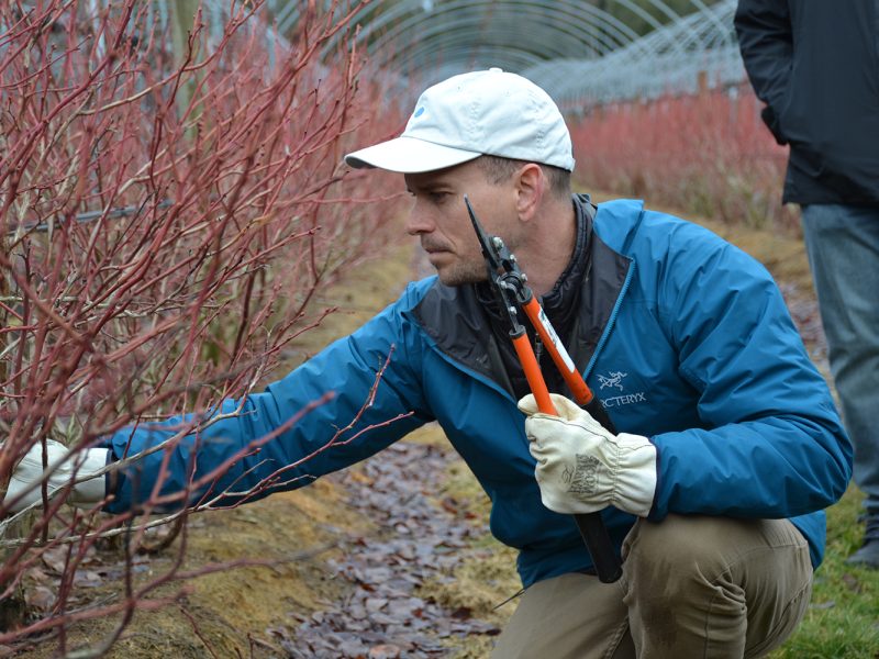 “You want to try to maximize your canopy growth,” says Lisa Wasko DeVetter, who leads the state-wide small fruit horticulture program at Washington State University in Mount Vernon, Washington. “We all do it a little different. I’m always thinking, what are the first good cuts I can make to improve the bush?”
